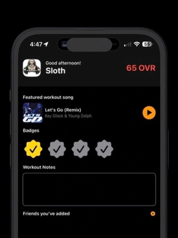 Share your favorite workout song, earn badges as your overall progress increases, and share your journey with friends.